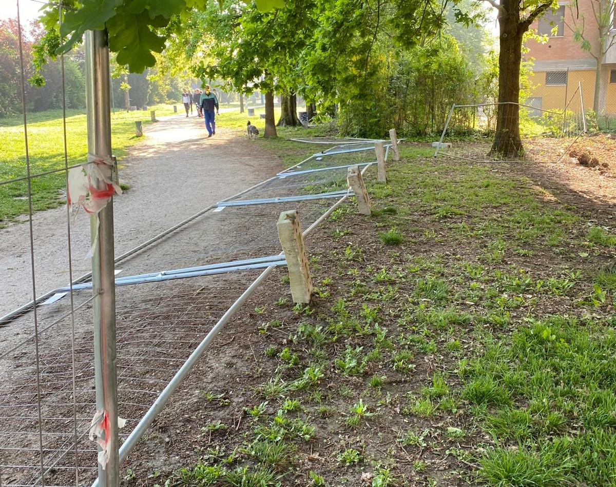 Ripetuti atti di vandalismo e danneggiamenti alla recinzione che separa l’area dell’Istituto tecnico Bassi-Burgatti in via Rigone e il giardino del Gigante a Cento.