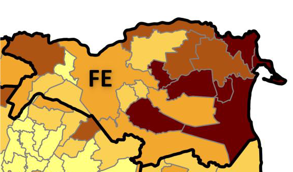Guardando al territorio ferrarese, si notano particolari differenze tra comuni.