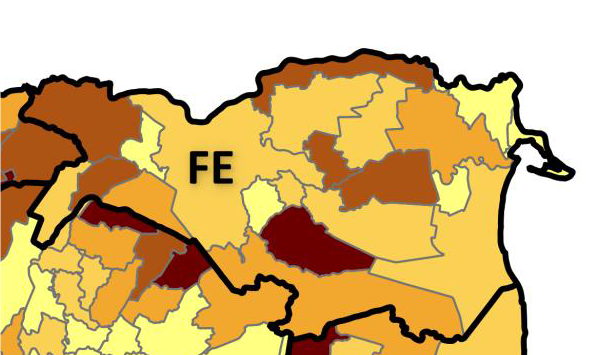 Un’immagine regionale complessiva, dunque, che racconta come la potenziale fragilità aumenta al crescere della distanza dall’asse centrale della Via Emilia e, in particolare, assume i valori più elevati nelle aree appenniniche e nel Basso Ferrarese.