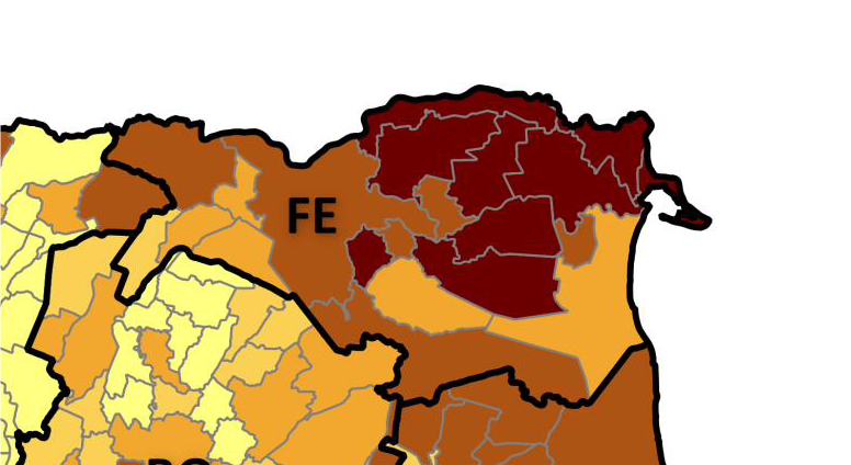 Questo studio, arrivato alla terza edizione, permette anche un confronto temporale della potenziale fragilità, quindi è possibile rilevare che a fronte del fatto che a livello regionale tra il 2019 e il 2022 i comuni che mostrano un miglioramento superano quelli che mostrano un peggioramento, per i comuni della provincia di Ferrara si rileva una sostanziale stabilità del livello di potenziale fragilità nel quadriennio considerato.